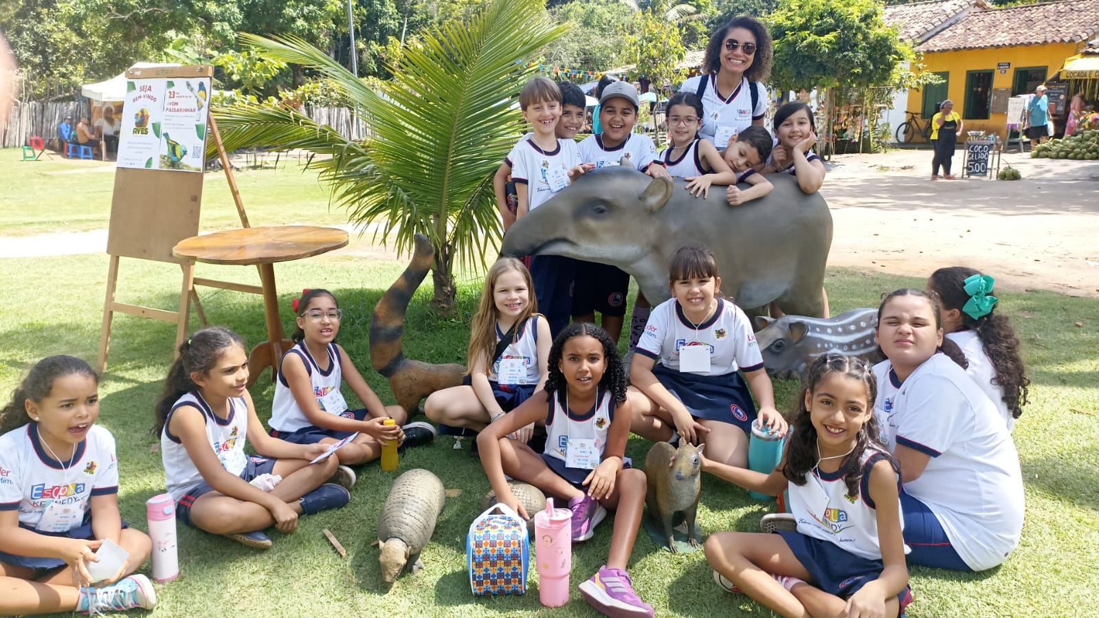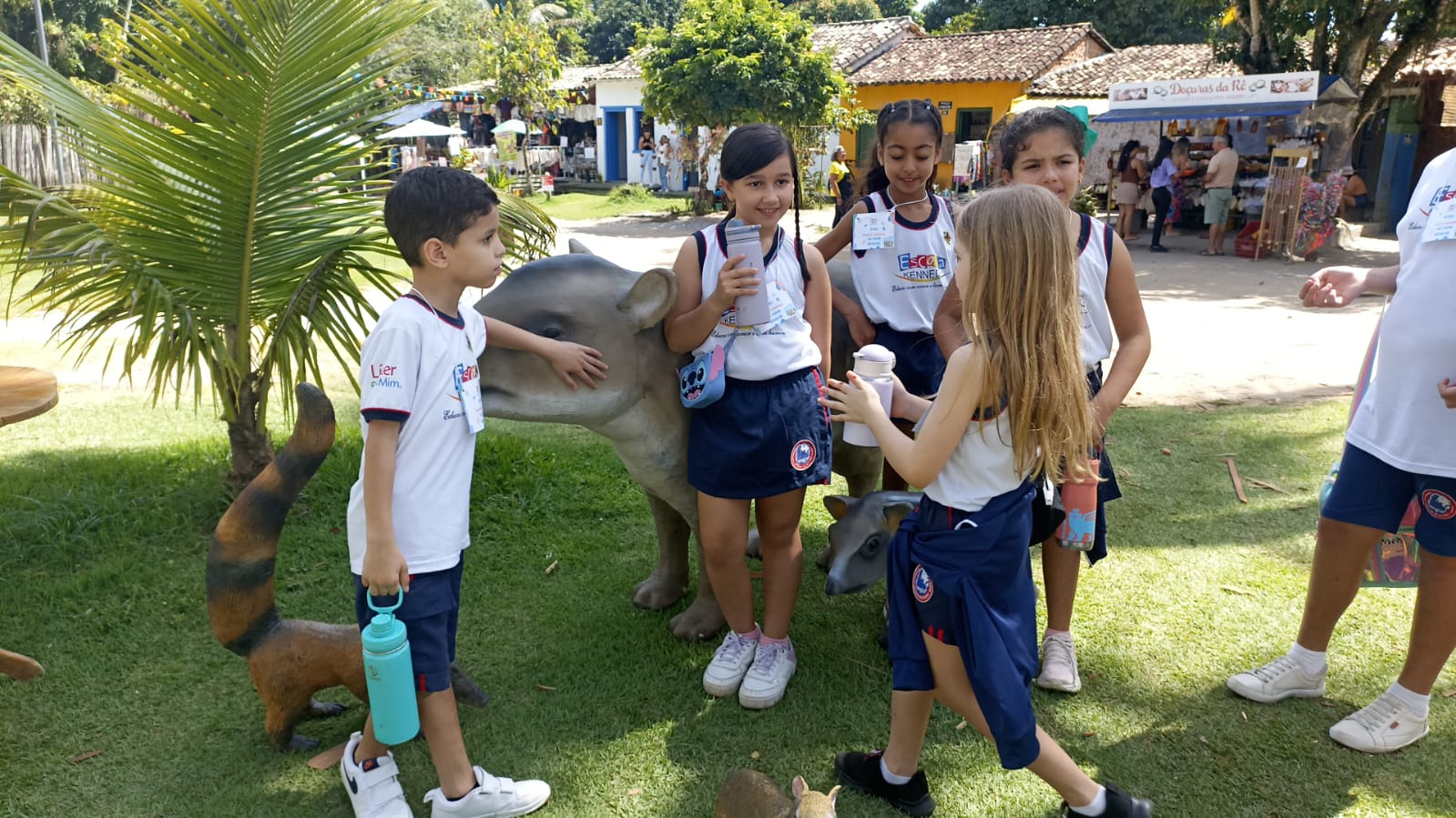 Na aula de campo realizada na cidade de Porto Seguro, os alunos tiveram a oportunidade de aprender de forma prática e divertida sobre a história e a cultura do Brasil. Durante o passeio, conheceram pontos históricos importantes, além de museus e espaços culturais que preservam a memória da chegada dos portugueses. As crianças também tiveram contato com aspectos da natureza local, observando a paisagem, a vegetação e a vida ao ar livre. A experiência possibilitou a integração entre teoria e prática, ampliando o conhecimento e despertando o interesse dos alunos pela história, cultura e meio ambiente.